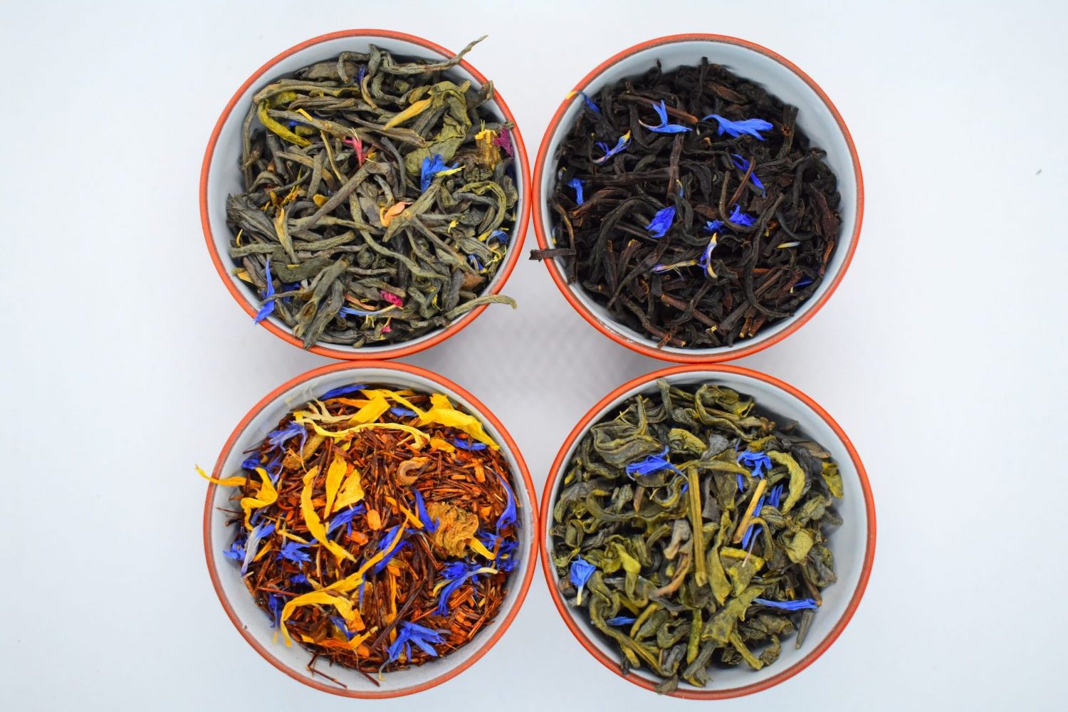 4) Earl Grey Rooibos (Tips & Buds) με γαλάζια και κίτρινα άνθη