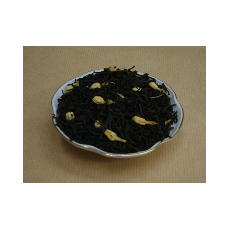 Ολόκληρα φύλλα μαύρου τσαγιού από την Κεϋλάνη με λουλούδια γιασεμιού. Πολύ έντονη γεύση και μυρωδιά.
